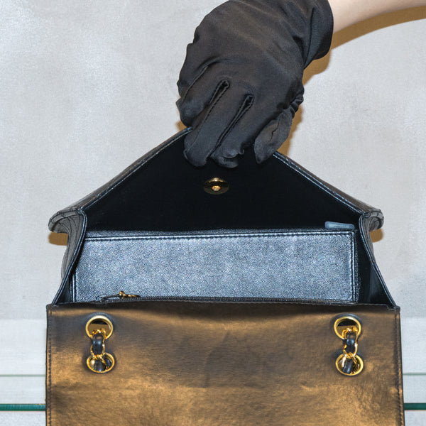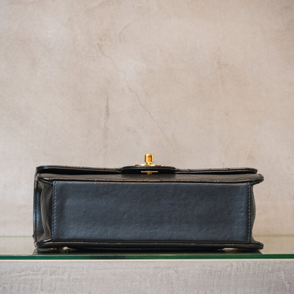 ふっくらとした独特なキルティングとブラック×ゴールドのカラーリングは可愛さとカッコ良さを両立したデザイン。幅が20cmと適度な収納量のため、シルエットを崩さずに実用的でどこにでも持ち歩けるバッグです。