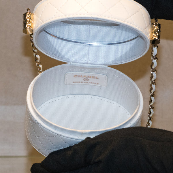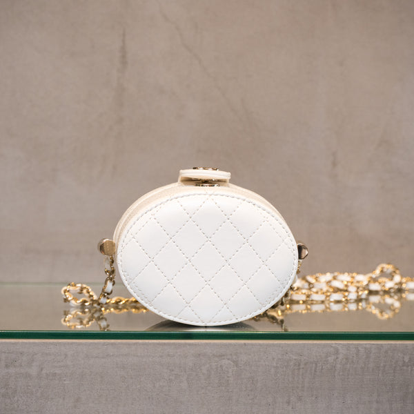 清潔感のあるホワイトはすっきりとした印象のラムスキンと相性が良いです。