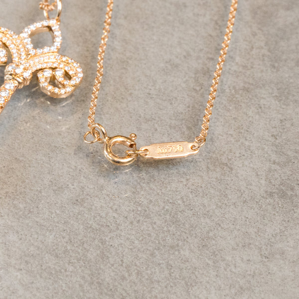 フルール・ド・リスを思わせる厳かで美しいデザインのトップはピンクゴールドの優しい光をベースに煌びやかに散りばめられたダイヤモンドで飾られています。