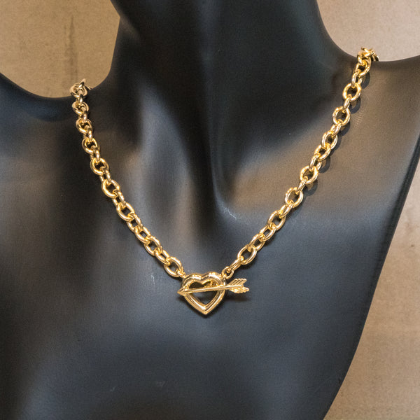 トグルクラスプをハートと矢で表現していて、付ける度にハートを射止めたているようなとてもユニークで可愛いデザイン。