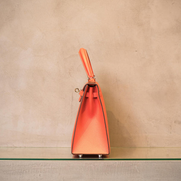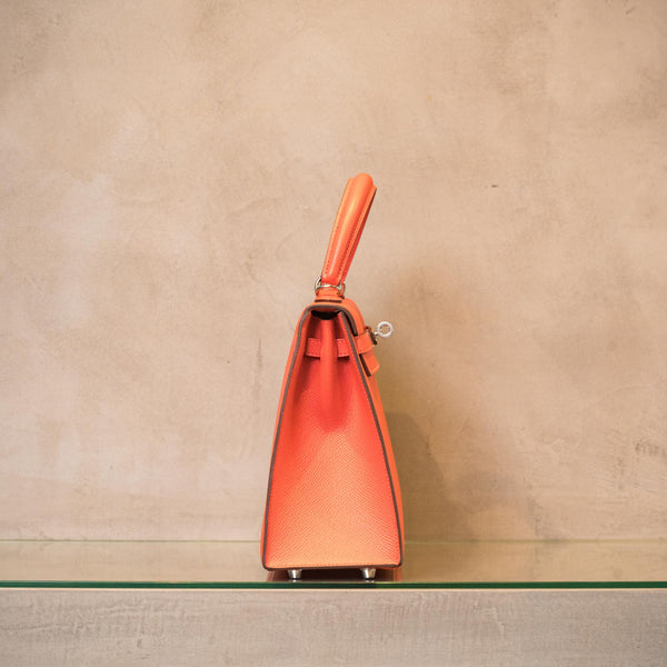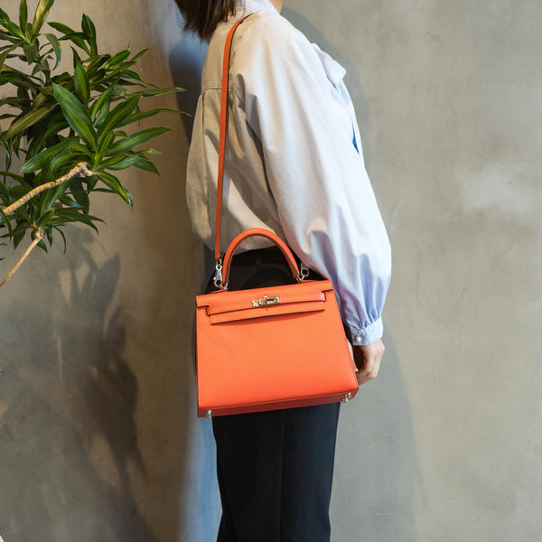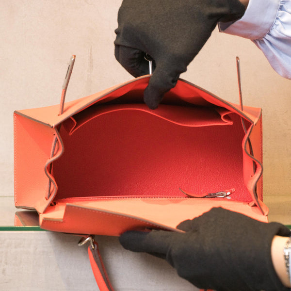 程よく艶のあるヴォー・エプソン素材を穏やかな発色のピンク(ローズジャイプール)で仕上げた美しい一品です。